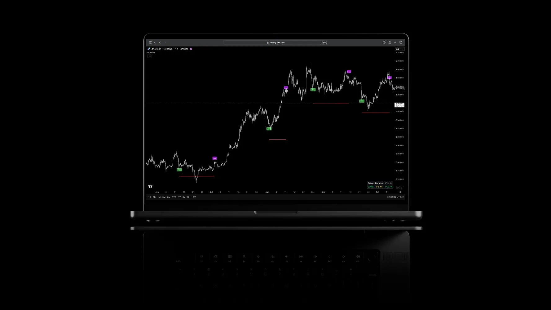 Торговля строится на собственном edge — преимуществе, которое позволяет отслеживать силу покупателя и продавца по BTC и альткоинам.